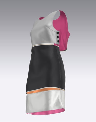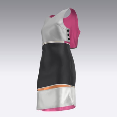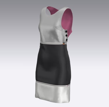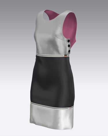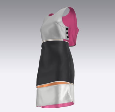 During my research, I found limited examples of garments with both practical and style-forward versatility. One exception was a piece from the Goldstein Museum of Design’s 1980s exhibit. While it may not have been intended for versatility, the dress featured a metal zipper running through the garment, which inspired me to use zippers in my own designs — not just as closures, but as connectors, allowing pieces to be attached or detached to transform their silhouette.